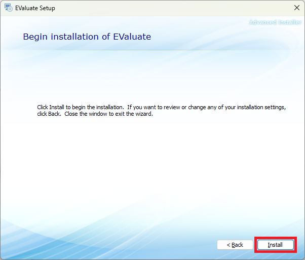 - The Welcome to the EValuate Setup Wizard opens, click Next: