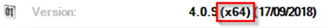 This displays at the bottom of the EValuate homepage and also indicates if a 32-bit (x86) or 64-bit (x64) variant is used.